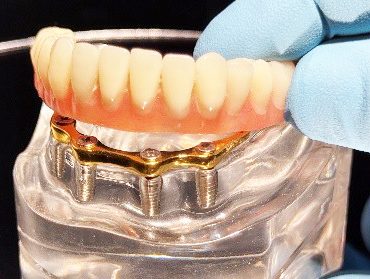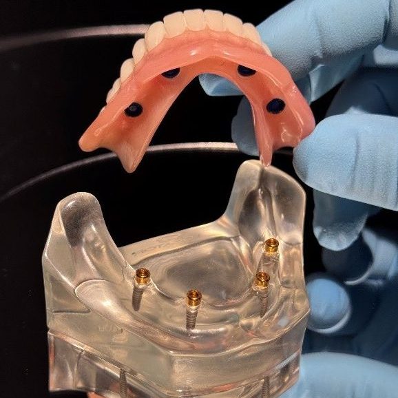 Demonstration Model Illustrating Abutment Screws that Attach to the Titanium Frame and Dental Implants.