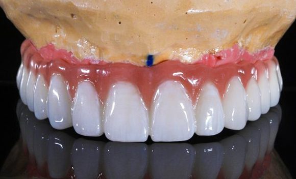 Milled Zirconia (Porcelain) Framework often with Custom Titanium Substructure and Zirconia Teeth.